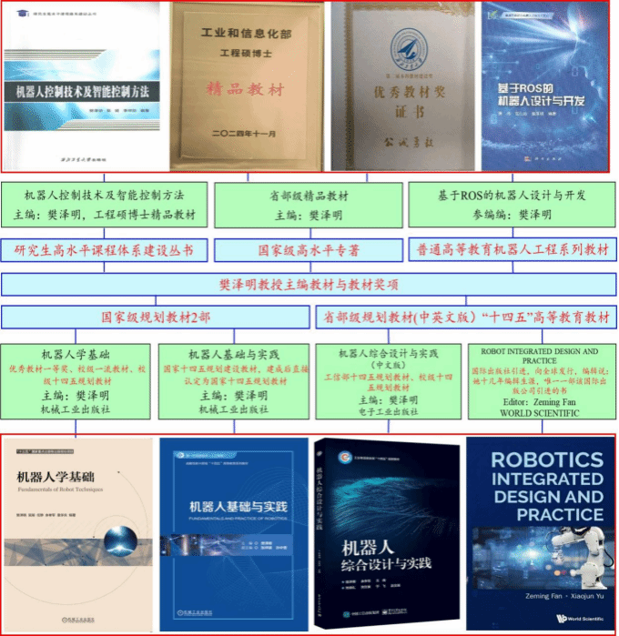 樊教授主持和参与了10余项国家级与省部级教改项目,取得了20余篇教改论文、10余项教改专利。相关教学成果不仅推动了机器人学科的前沿发展,也为国内外高校与企业提供了宝贵的技术支持。
