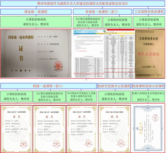在教学方面,樊教授开发了基于“互联网+数字孪生+AI技术”的线上线下混合式教学平台,以此为支撑,课程负责人建设:国家级一流课程1门、省级各类一流课程3门、校级各类一流课程6门;第一主编:教材6部和教改专著3部,其中,中国机械行业优秀教材一等奖(最高奖)、国家重点出版物出版项目2部、国家战略新兴领域“十四五”规划教材1部(直接参评国家“十四五”规划教材)、已推荐参评国家“十四五”规划教材1部、国际著名出版社出版英文教材1部、工业和信息化部精品教材1部、工业和信息化部“十四五”规划教材1部,国家出版基金项目专著1部;专业负责人主持:《机器人工程》专业建设与改革,获国家级一流专业,2023年软科评级“A+”和软科排名全国“第六”;分别以第一、第三完成人获得:省级教学成果奖3项、校级教学成果奖8项;第一完成人获得:省级以上教学竞赛奖20余项,其中全国高校教师教学创新大赛荣获一等奖(本次大赛,全国高校一等奖只有12项、二等奖40项、三等奖197项,该奖项为陕西省唯一一等奖);第一完成人获得:中国机械行业教育教学名师、校级卓越名师奖等教学荣誉奖10余项;负责人获得:优秀教学研究一等奖2项、西部联盟竞赛奖1项、优秀基层教学组织奖和示范课程团队2项。