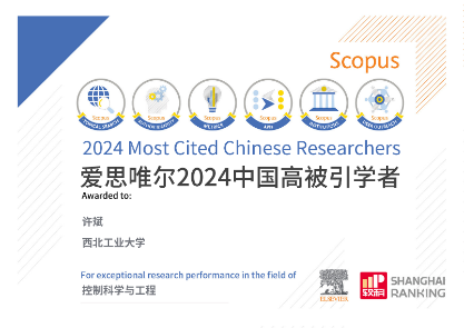 2025年3月25日,爱思唯尔(Elsevier)正式发布2024“中国高被引学者” (Highly Cited Chinese Researchers)榜单,西北工业大学共有43人上榜。