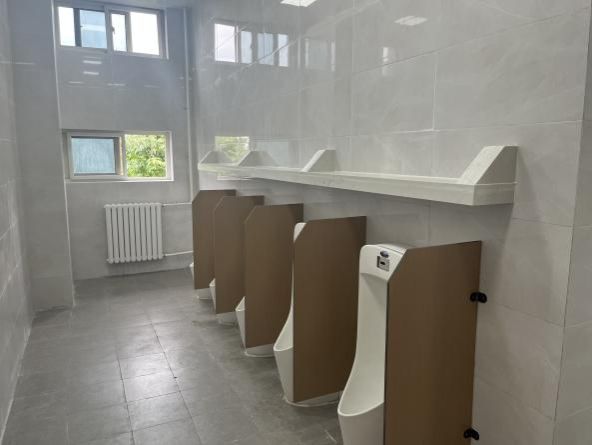 楼全部28个卫生间的整体改造工程,集中完成淡雅系高颜值、更加便捷舒适的卫生间建设。改造后,所有卫生间简约明亮,并搭配木质隔段、脚踏式冲水装置和带灯智能镜、烘手机等人性化设施,只为给师生提供更加实用方便、洁净舒心的如厕环境。