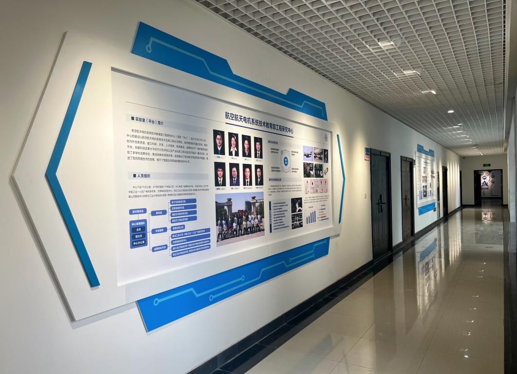 以文化人,为自动化印记添彩增色。在二楼报告厅区域增设了师生活动形象展示墙,将师生对大好祖国河山、大美校园风光和日常精彩瞬间的光影记录,以摄影作品形式予以呈现,通过具体的文化承载形式涵育师生文明风尚。在二楼副楼西厅公共区域,结合实验室科研特色,更新亮化背景墙、点缀飞机形灯饰吊顶、凝练形成实验室文化展板,展现自动化师生勇担强国重任、砥砺科技报国之志。