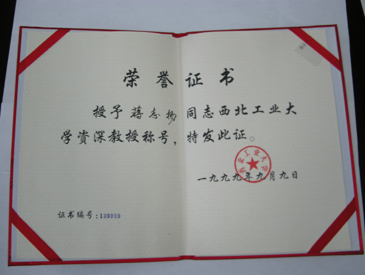 蒋志扬老师获博彩网站导航 “资深教授”证书