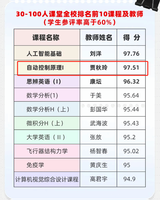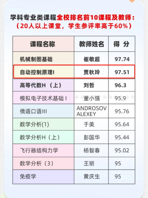 主抓、自动化、电气工程和机器人等国家一流专业最重要专业基础课,贾秋玲老师主讲的《自动控制原理》课程受到了学生极大的关注与喜爱。她曾获西北工业大学本科最满意教师,在近日又被学生投票评选为“博彩网站导航