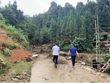 次日,经过多方努力,与正在遭受泥石流灾害的融水县安太乡甲报村党支部取得联系,一行人前往甲报村贫困家庭进行走访慰问,并向那里的孩子送去助学金。甲报村是“十三五”贫困村,共369户1551人,面积约150平方公里,共分10个自然屯,每个屯相隔数十公里。从融水前往甲报村,需要经过两个半小时的山路路程,途中,由于泥石流滑坡导致的道路拥挤,一行人步行穿过清障区,与甲报村贫困村民会面并亲切交流,并深入部分贫困家庭送上西工大温暖。