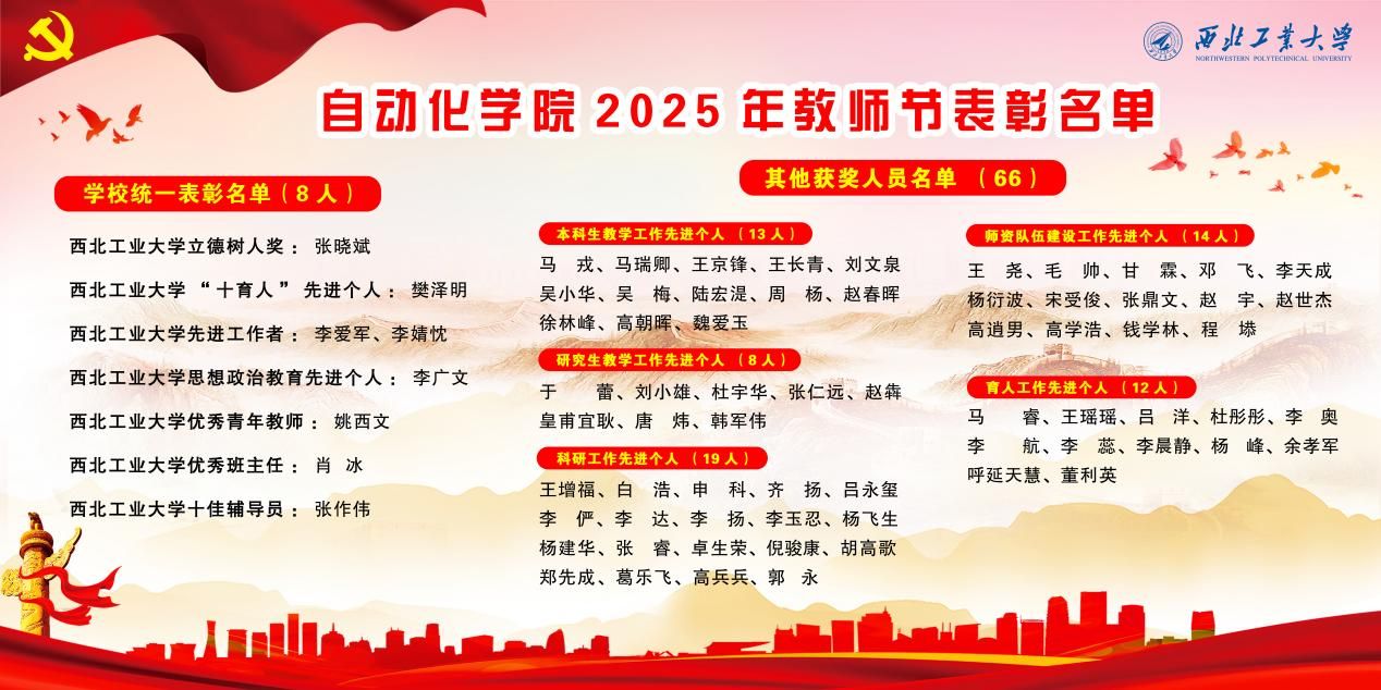 本科生教学工作 、研究生教学工作 、科研工作、师资队伍建设工作 、育人工作等先进个人66名 。