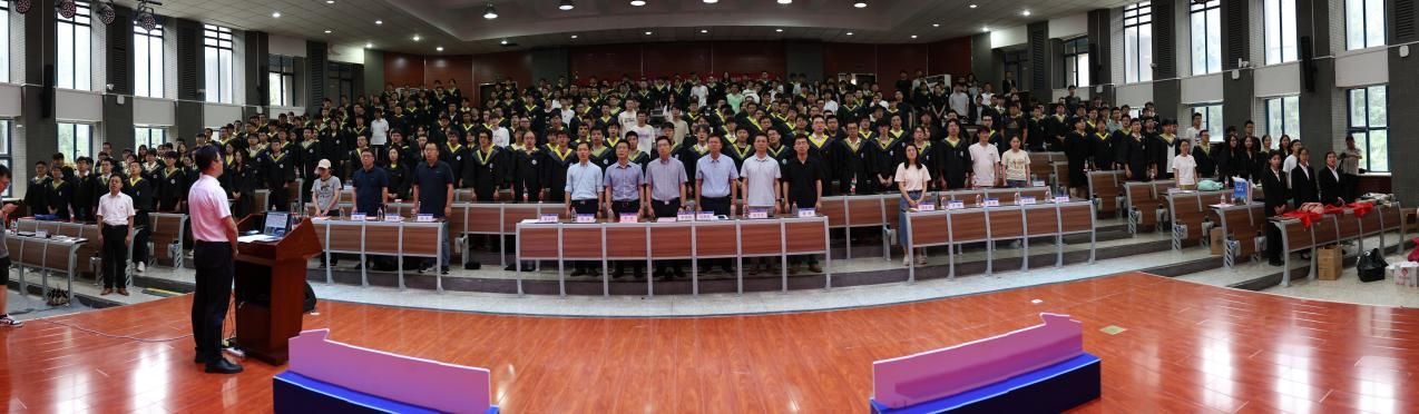 党委副书记易正阳主持。典礼在庄严的国歌声中拉开帷幕,全体毕业生身着学士服肃然站立,齐唱国歌。
