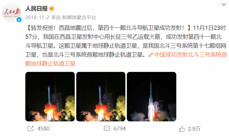 2018年11月1日23时57分,我国在西昌卫星发射中心用长征三号乙运载火箭,成功发射了第四十一颗北斗导航卫星暨北斗三号高轨首发星(GEO-1)。该卫星发射成功后,中国空间技术研究院西安分院特地发来感谢信,对刘景林教授团队在卫星天线驱动系统研制中所作的突出贡献表示了感谢。
