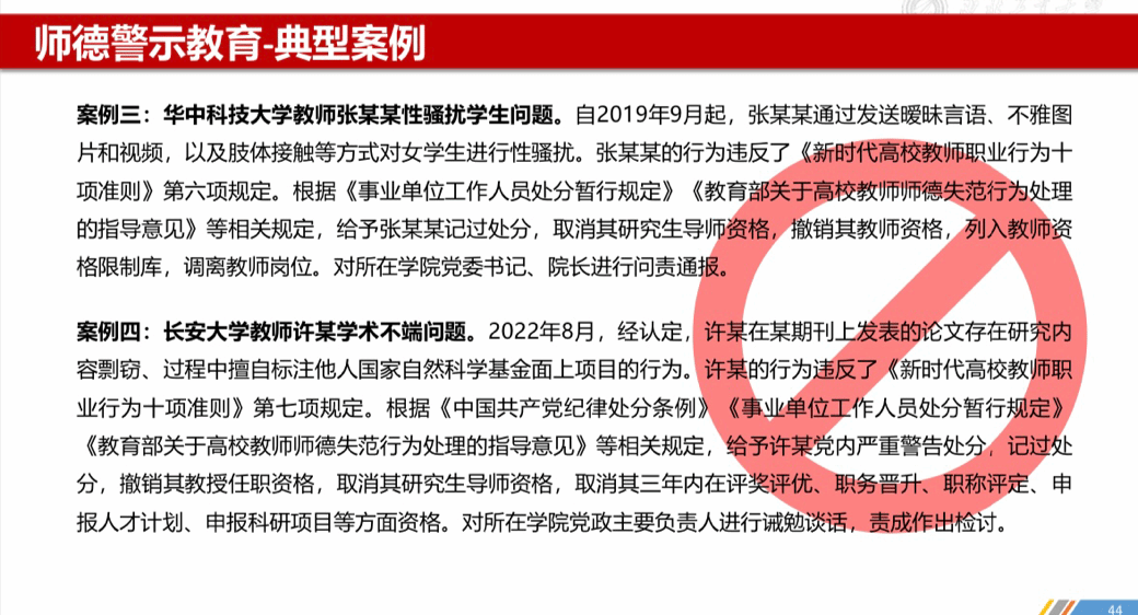 《西北工业大学师德集中学习教育实施方案》部署安排,本次党课还重点开展了师德规范宣讲及法制教育。李伟林带领全体教职工集中学习了《新时代高校教师职业行为十项准则》《西北工业大学师德失范行为负面清单》《西北工业大学教师思想政治和师德师风考察实施办法》《西北工业大学师德考核实施办法(试行)》和教师相关法律法规,并结合教育部公开曝光第十一、十二批违反教师职业行为十项准则典型案例开展师德警示教育。