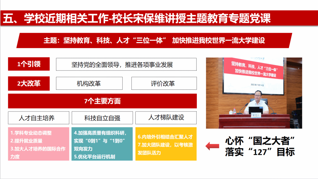 党委书记李言荣、校长宋保维主题教育专题党课精神;党课紧密围绕主题教育调查研究部署安排,从顶层设计、实施情况、调研成果运用及发展思路举措等方面详细介绍了博彩网站导航