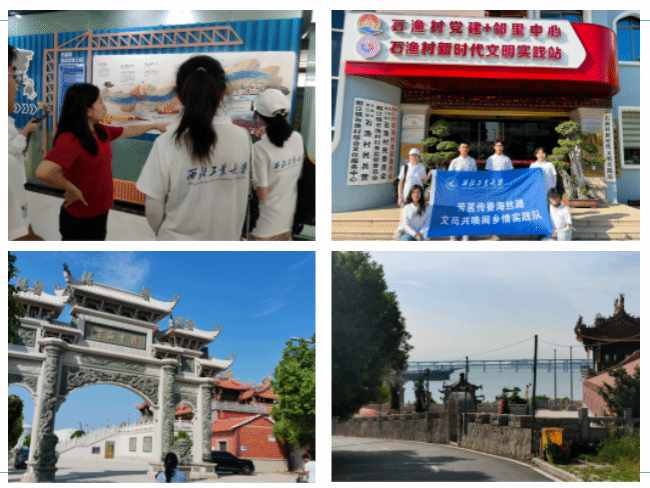 位于泉州市下辖的石狮市石渔村,经济发展水平在蚶江镇名列前茅,是成功利用海丝文化助力乡村经济发展的典范。本次实践队员走进石渔村,深入石渔村村民委员会,与工作人员进行了充分交流。通过交谈,队员们不但了解了石渔村村民生活水平、航运发展历史等基本情况,还在相关人员的带领下参观了该村新建成的“石渔村新时代文明实践站”,对该村的发展现状有了更深入的认识。