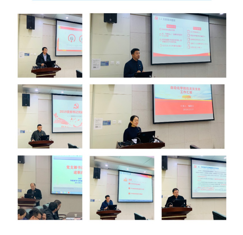 7个教工党支部在认真准备述职内容前提下,全面展示了支部全年工作情况,剖析现有问题并制定2020年工作计划。