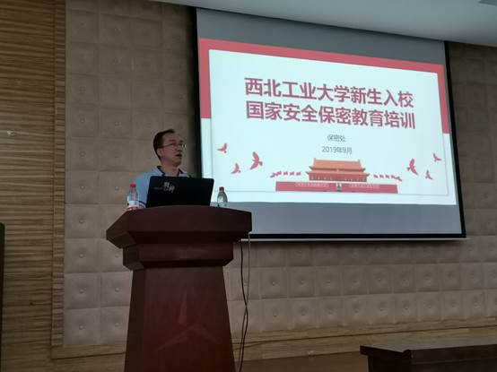 研究生辅导员汪远林副教授主持,由西北工业大学保密处副处长王革明老师主讲。2019级全体研究生新生参加了此次会议。