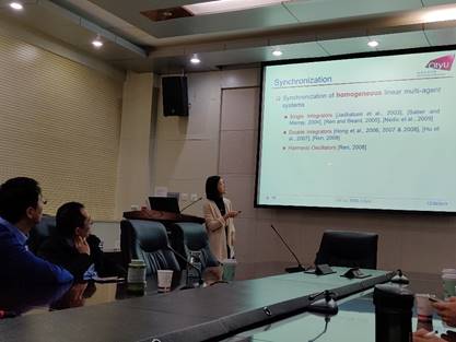 本次报告会,刘璐教授主要介绍了关于网络化异构线性多智能体系统的输出同步问题,就自己目前在异构多智能体系统输出同步方面的研究成果进行了讲述,着重对所提出的低增益分布式动态输出反馈控制器的结构进行了详细的分析。