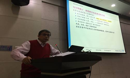 党委副书记李伟林针对于郁总的报告对在场学生提出几点期望,希望同学们能够再接再厉,提高自己的学习能力和适应新环境的能力。同时,强调要针对个人实际做出正确选择,珍惜时间,奋发向上。