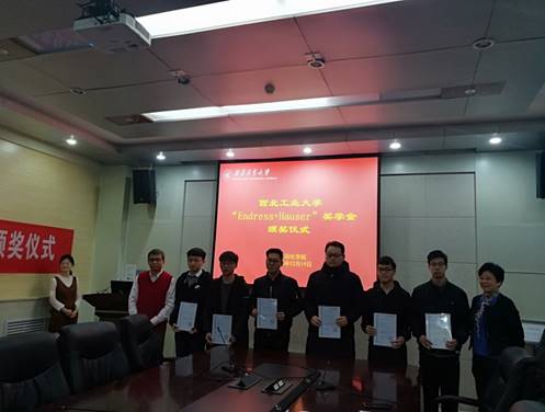 领导的重视。他谈到,Endress+Hauser公司是一家德国自动化设备制造和销售公司,公司在自身发展的同时,十分注重企业承担的社会责任,先后在国内十几所知名院校签约校企合作协议,他表示非常愿意深化校企之间在人才培养和科研领域的合作,并祝贺和勉励了所有获奖同学。