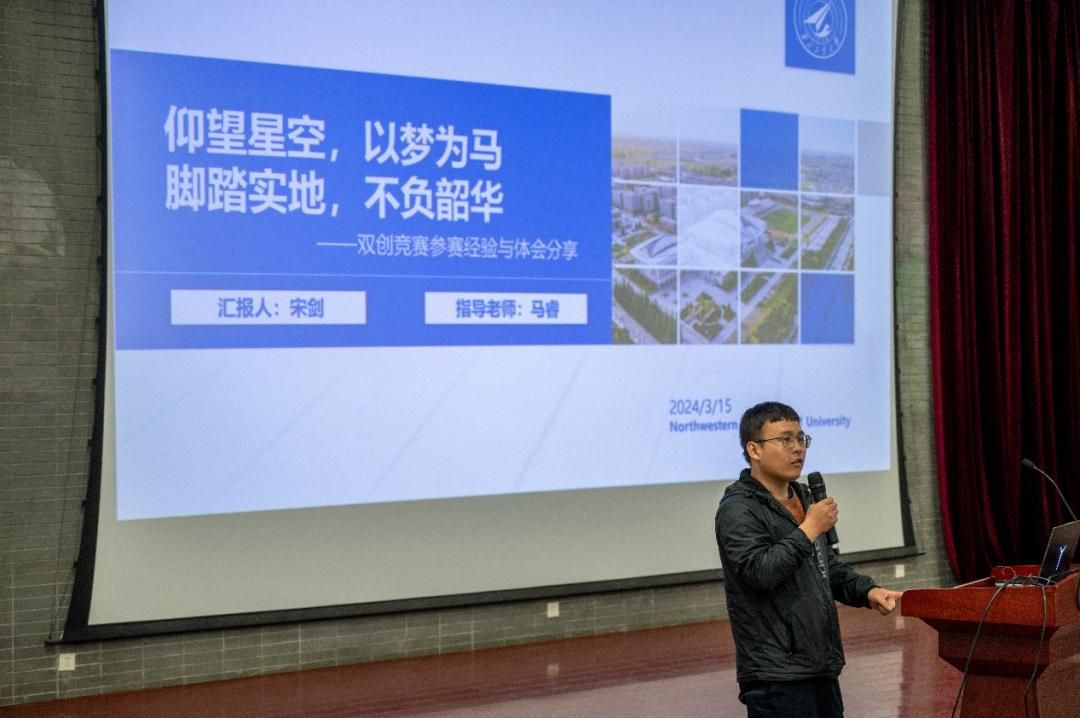 第十八届“挑战杯”赛事国家特等奖获得者宋剑分享了他在竞赛中的历程与体会。他向学弟学妹们讲解了科研所要经历的阶段,指出创新和独立思考的必要性。随后他讲述了备战“挑战杯”赛事的整个过程,指出了在创新创业类赛事中需要注重的打磨方向以及应注意的细节。