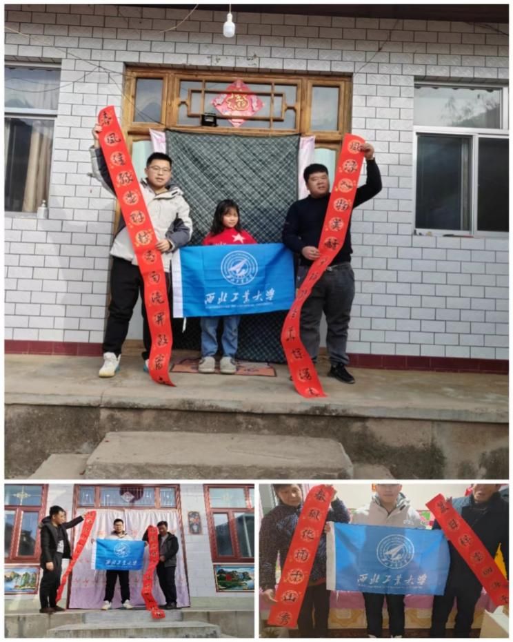 完成了部分春联的书写工作,郑璞泉同学则负责将这些春联送给家乡有需求的家庭。红色的对联象征着来年生活越过越红火,收到对联的乡亲们无不洋溢着幸福的笑容,他们对罗同学的一手好字赞不绝口,同时也向志愿者以及西工大学子给予了鼓励和诚挚的赞美。