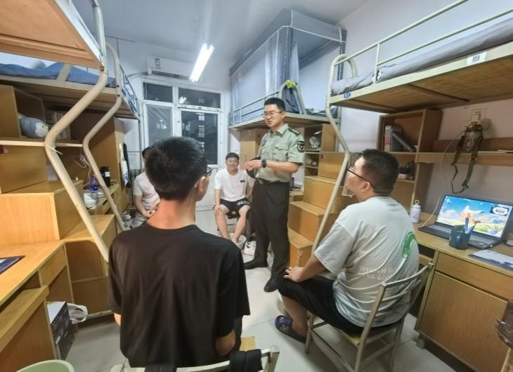 易正阳与董瀚林、华志广逐一踏入新生们的宿舍,亲切地进行慰问,关心同学们是否还适应大学生活,自理能力如何以及同学们的关系怎样,并鼓励同学们在大学里继续努力,努力适应大学节奏,再创佳绩。