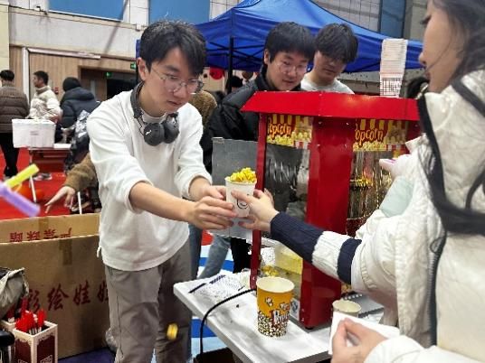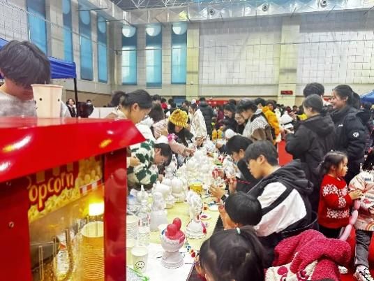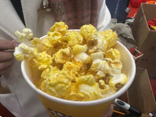 旁边处传来阵阵香甜气息,原来是爆米花机正在快速转动,金黄的爆米花伴随着欢快的“砰砰”声跳跃而出,引来阵阵欢呼。