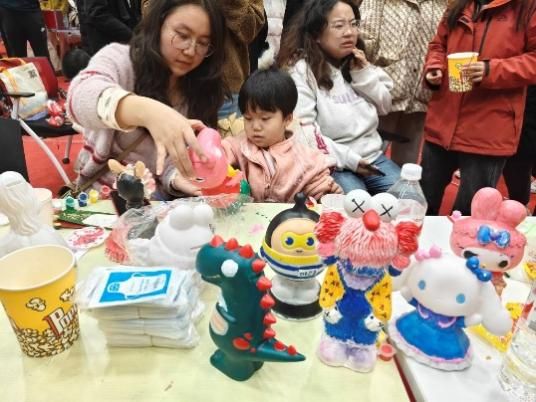 的活动区域人头攒动,同学们围坐在一起,认真彩绘着各式各样的石膏娃娃,每个人都沉浸在创作的快乐中。