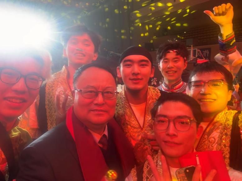 演出期间,校长宋保维也来到现场观看演出,并在晚会结束后与参演同学们亲切合影,勉励大家在新的一年里继续以昂扬向上的精神风貌展现当代大学生的风采。