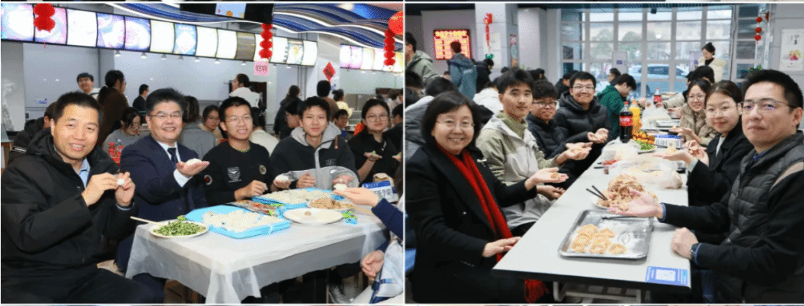 各年级80余名同学一起参与了此次活动。只见案板上面粉纷飞,不少第一次包饺子的同学们认真学习,跃跃欲试。饺子造型或许不够完美,但欢声笑语中却展现出浓浓师生情。一盘盘热气腾腾的饺子端上桌,香气四溢,师生们品尝着自己的劳动成果,脸上洋溢着幸福的笑容。这一刻,仿佛回到了家里过年的温馨场景。张艳宁副校长一边向同学们分享自己包饺子的小窍门,一边关切地询问同学们的学习生活情况,现场其乐融融。