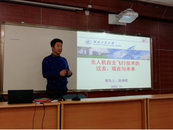 科技周活动,并与张正中书记、教务处钱家峰主任和校办韩主任座谈交流。座谈后,赵春晖副教授为高二年级苗圃班、重点班学生作了题为《无人机自主飞行技术的过去、现在与未来》的科普报告,并和学生互动交流。