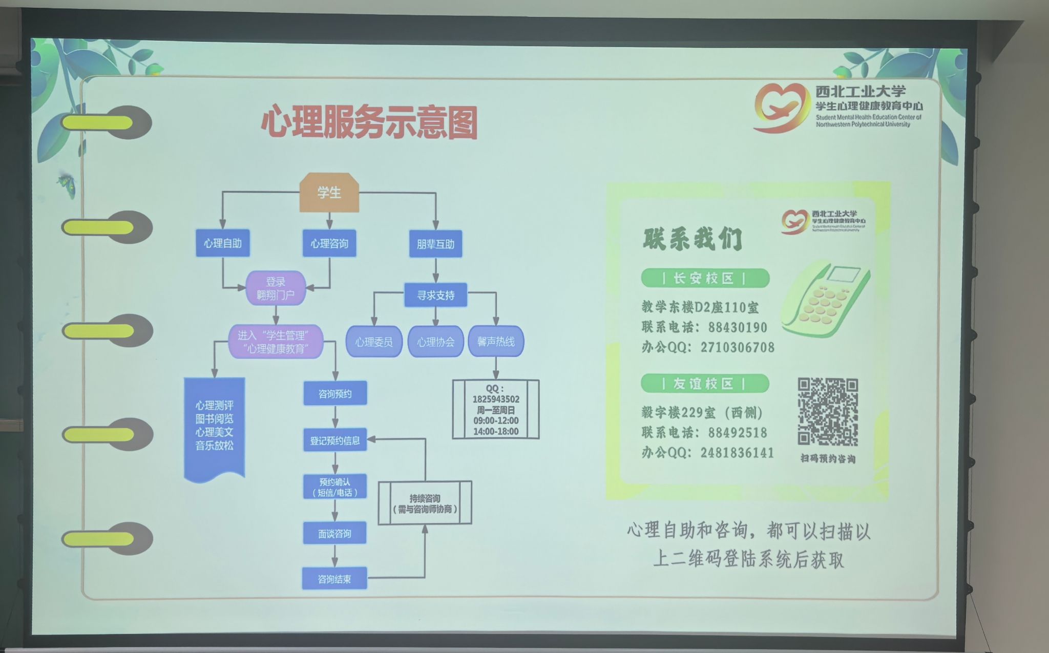 丰富多彩的心理健康服务。她指出,心理健康教育中心始终致力于为每一位西工大学子提供服务,除了常规的心理咨询,还有形式多样的朋辈互助、心理游园会、手语操大赛等活动,为同学们排忧解难。讲座最后,郭老师祝愿在场的 2025 级新生们都能拥有美好的心灵,具备爱与成就的能力!