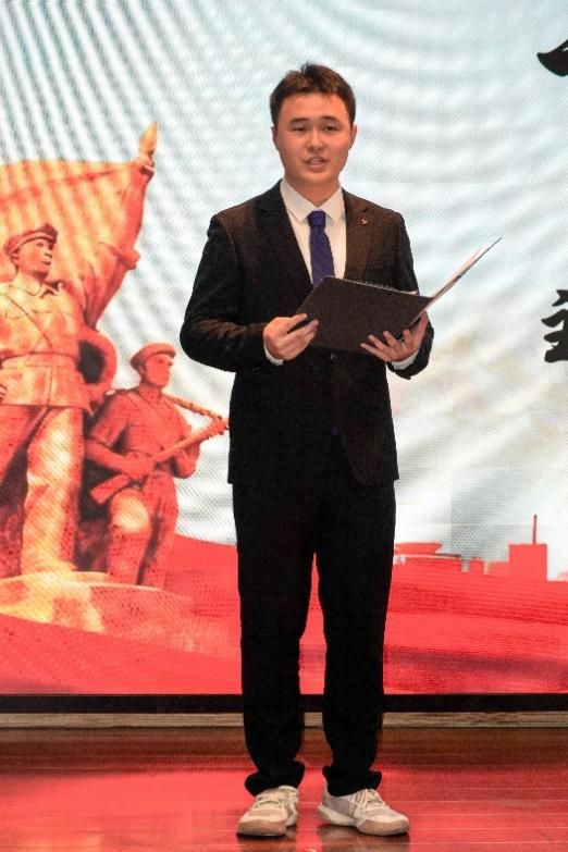 第三位上场的是曹钰茜同学,当九三阅兵时杨靖宇支队的旗帜率先随风飘扬在镜头之中,那段可歌可泣的抗联故事如东风拂面时江面上融化的冰块一般随波涛撞击着我们每个人的心灵岸边。