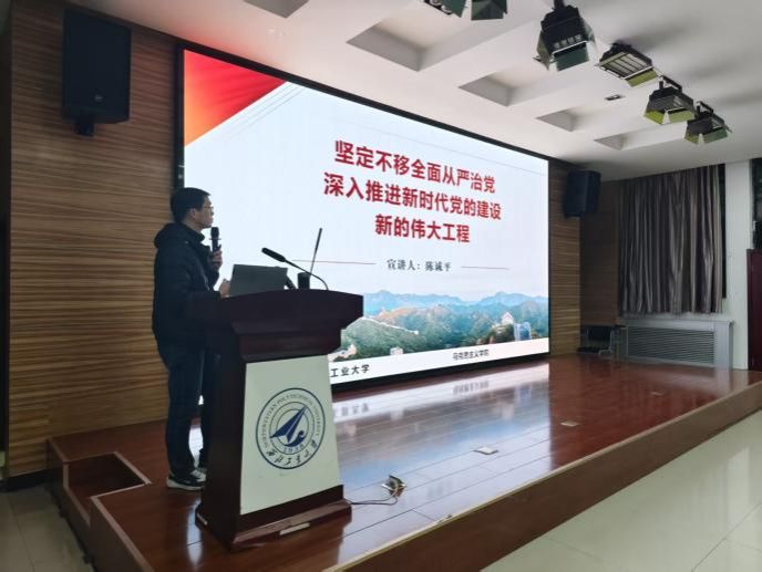 陈诚平老师以“党的建设”为主题,阐述了新时代党的建设新的伟大工程取得的成就:以八项规定强化理想信念、严密组织体系,以钉钉子精神纠治“四风”以正风肃纪,开展史无前例的反腐败斗争,还找到了自我革命这一跳出治乱兴衰历史周期率的第二个答案。他强调,要从坚持和加强党中央集中统一领导、坚持不懈用习近平新时代中国特色社会主义思想凝心铸魂等多方面发力,坚定不移全面从严治党、深入推进新时代党的建设新的伟大工程。