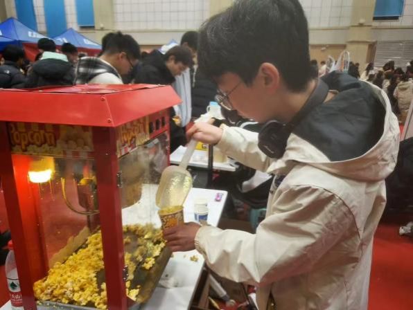 学生会的同学还为大家准备了爆米花、夹心饼干和可乐,作为奖品和休闲零食共同分享。