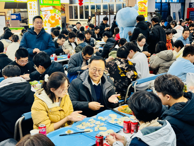 院长李伟林、党委书记孙华强及辅导员等,与80余名各年级学子一同参与了此次活动。当一盘盘热气腾腾的饺子端上桌,鲜香扑鼻,师生们围坐分享,品尝着亲手制作的美食,感受着 “家” 的温馨与温暖。