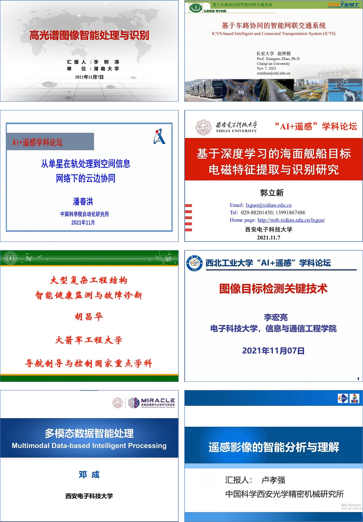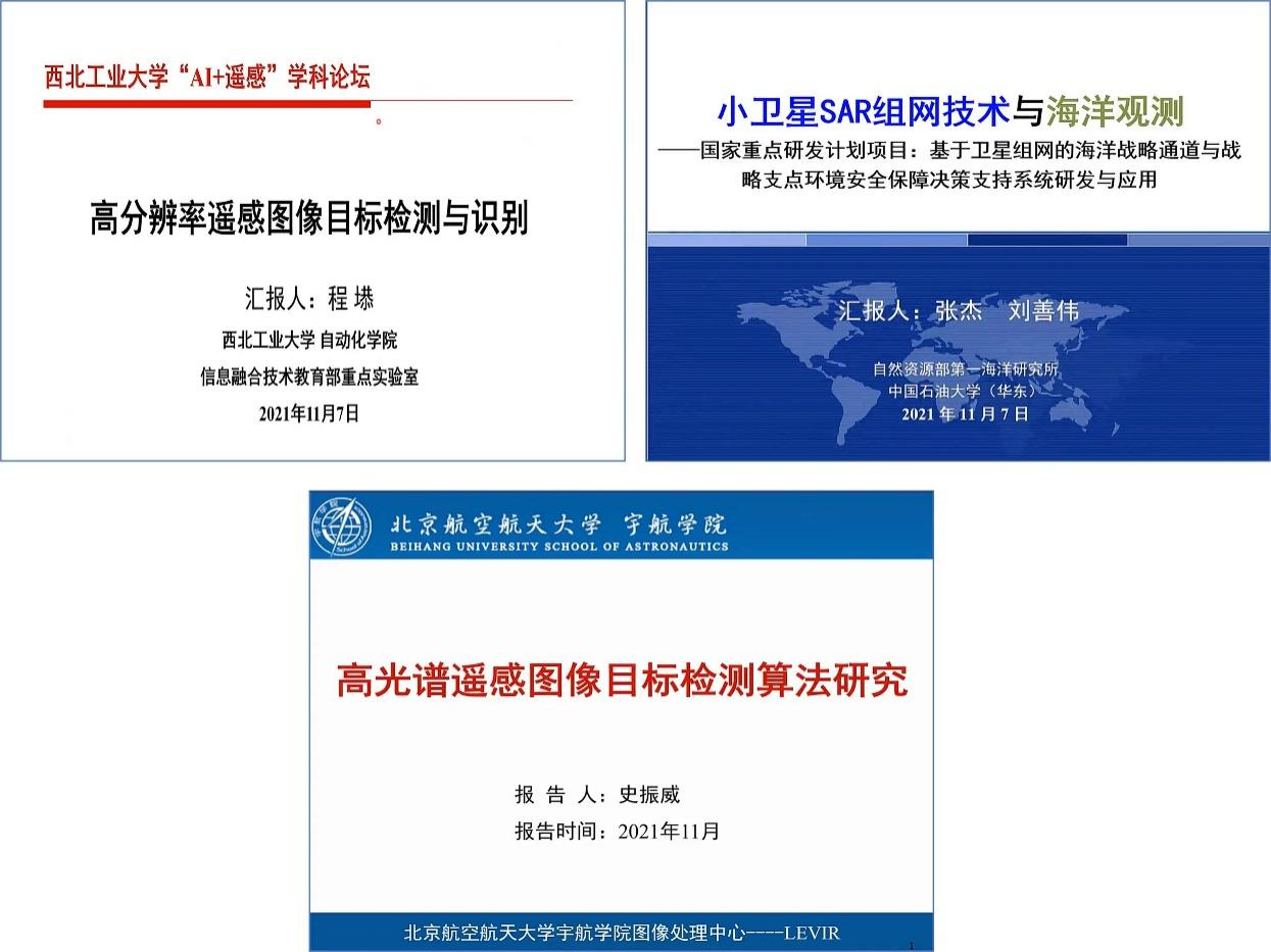 西安光学精密机械研究所卢孝强研究员报告了遥感影像的智能分析与理解,西北工业大学程塨研究员分享了高分辨率遥感图像目标检测与识别,自然资源部第一海洋研究所张杰研究员介绍了小卫星SAR组网技术与海洋观测,北京航空航天大学史振威教授分享了高光谱遥感图像目标检测算法研究。
