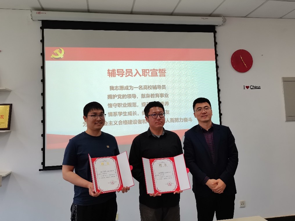 会议伊始,管峻宣读了工作期满辅导员及新任辅导员名单,并为其分别颁发任职留念和聘任证书。