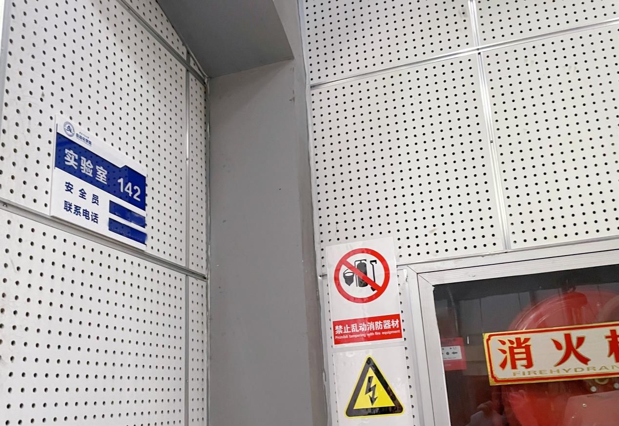 统一为各实验室制作并安装了安全员信息牌,信息牌标明了本实验室具体所在位置、安全管理员和紧急联系电话。