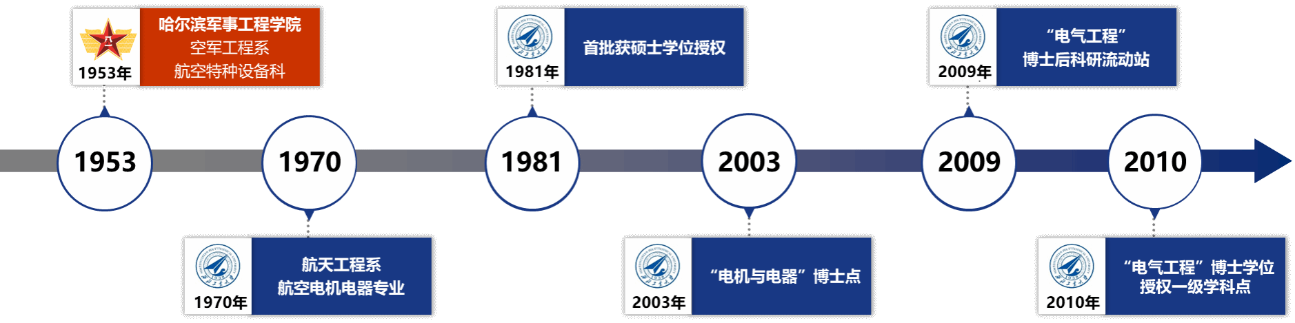 学科自创始以来,在蒋志扬、蒋宗荣、李颂伦等先生的带领下,始终发扬哈军工优良传统,一直面向于服务国家重大战略需求,专注于航空航天电气工程领域的基础性和前瞻性技术研究,以武器装备多电/全电化、电推进飞行器、新能源等为主线,以“突出空天行业优势,坚持服务国防特色,提升学科学术水平”为建设宗旨,形成了以稀土永磁电机、机电伺服控制、航空航天器电力系统为重点的研究方向,以及航空电推进、新能源、智能部组件等新兴研究方向,具有明显的行业特色和优势。