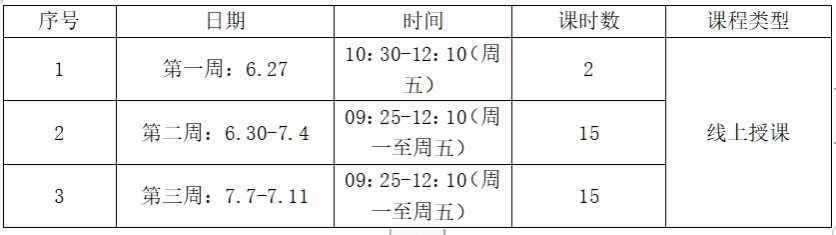 时间安排:2024-2025学年夏季学期(暑期)从2025年6月23日开始至2025年7月13日结束,共3周