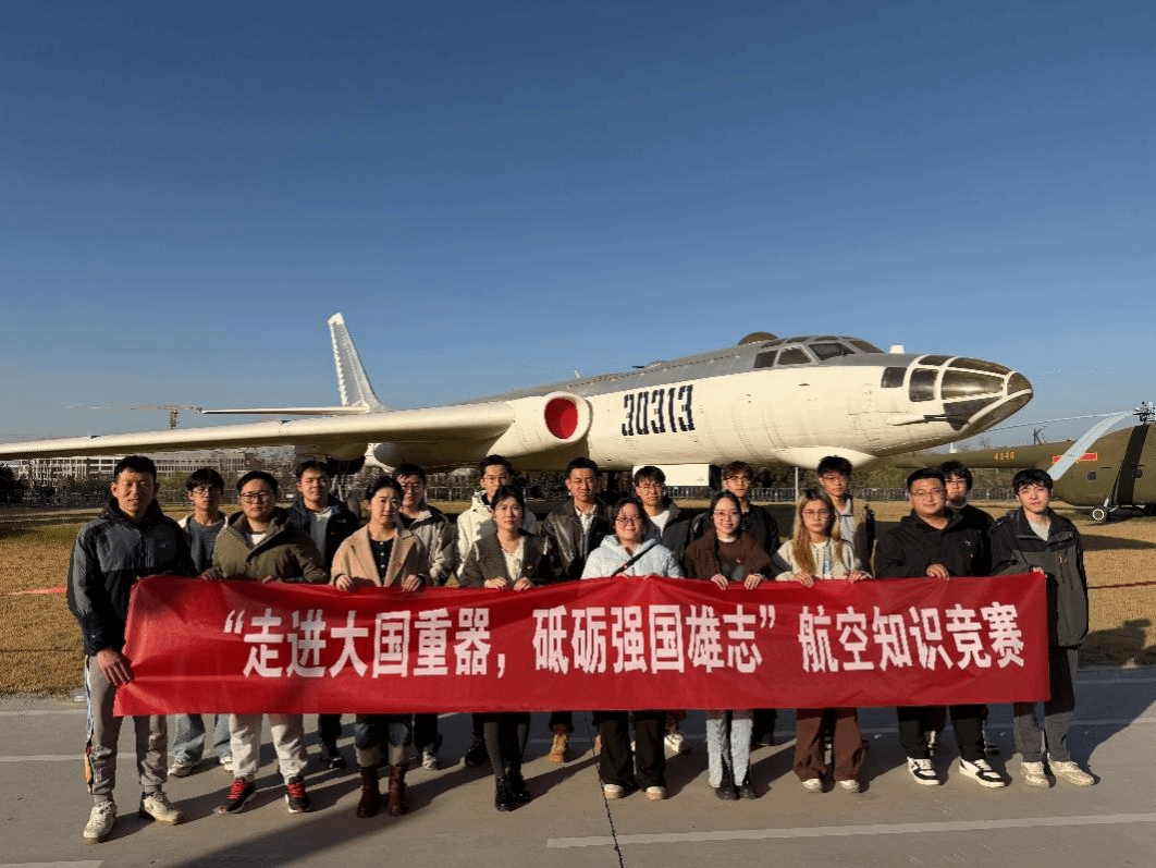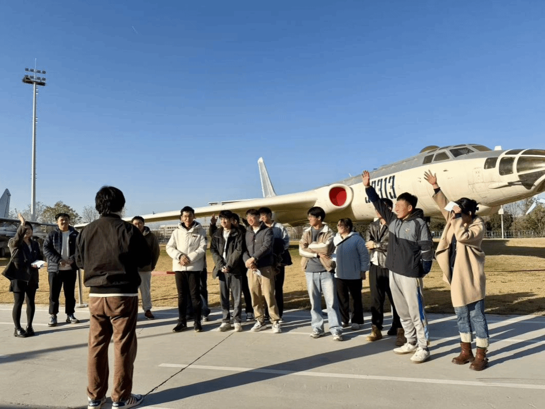 随后,支部成员们前往军工素质教育实践中心进行实地学习。在室外展场,运-20大型运输机、轰-6轰炸机、DF-2等一大批国之重器赫然展现在眼前。同学们近距离观察这些航空装备的外观结构,感受几代航空人艰苦奋斗、自主创新的伟大成就。在展馆内,支部成员们认真听讲解员讲解《中国航空史》,深入了解中国航空事业从无到有、从弱到强的艰辛发展历程。书中记录的一代代航空人呕心沥血、攻坚克难的事迹,深深打动了每一位同学。