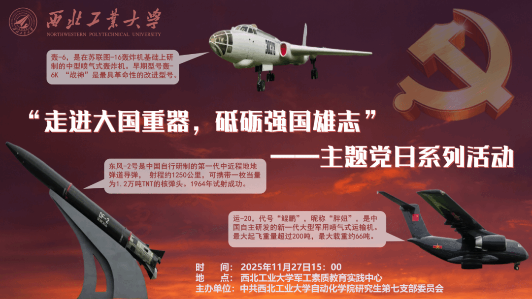 2025级硕士研究生杜建卓:通过这次党日活动的学习,更加深刻地了解到一件件大国重器背后的故事以及一代代科研工作者的付出与努力,筚路蓝缕起苍茫,无数怀揣着热忱与希冀的西工大人投身国防,建立起坚实的红色长城,未来我们会以这些前辈为榜样,努力学习,严谨科研,为国家建设奉献自己的力量。