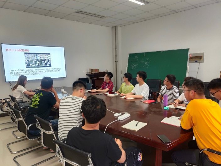 硕士生党支部顾霜同志为支部成员分享了“探索社会主义建设道路的良好开端——中国共产党第八次全国代表大会”专题党课。顾霜同学从会议背景、会议内容、历史地位三个方面介绍了中国共产党第八次全国代表大会。