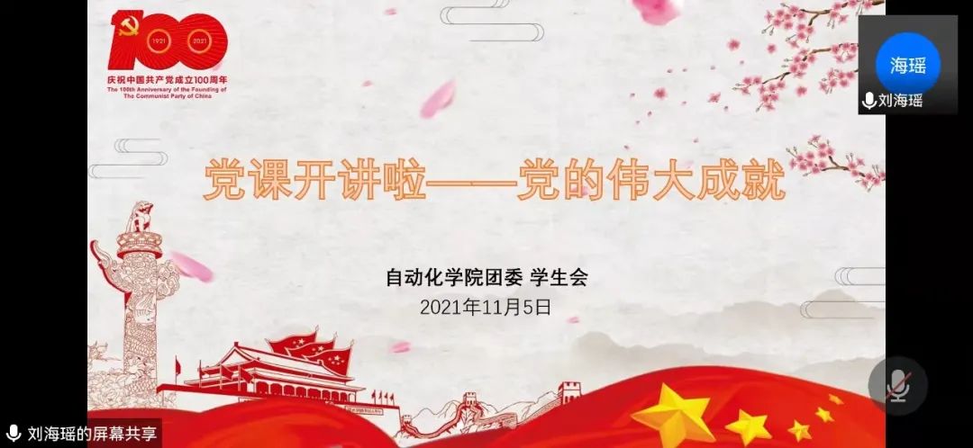 团委、学生会于11月5日晚上集中学习第三期《党课开讲啦》——《党的伟大成就》。本期节目由中共党史党建研究院执行院长、中国人民大学教授杨凤城讲述了我们党成立一百年来,经历一代又一代的不懈努力,实现了中国沧桑巨变,建立了丰功伟绩。