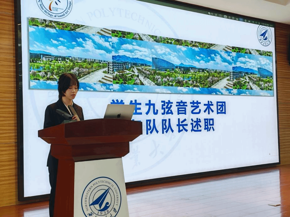 第26届团长李子琪同学系统阐述了工作规划与发展愿景,表示将秉承九弦音“艺术育人、服务校园”的宗旨,推动艺术创作与团队建设协同发展,并希望全体成员以热忱之心共筑艺术梦想。