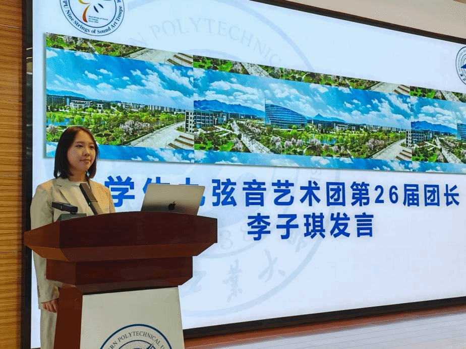 赵春晖以“守正创新、工大精神”为主题,深情回顾了九弦音的成长历程,将九弦音的艺术风格与西工大的“总师育人文化”相结合,让九弦音的品牌在工大更加闪亮。