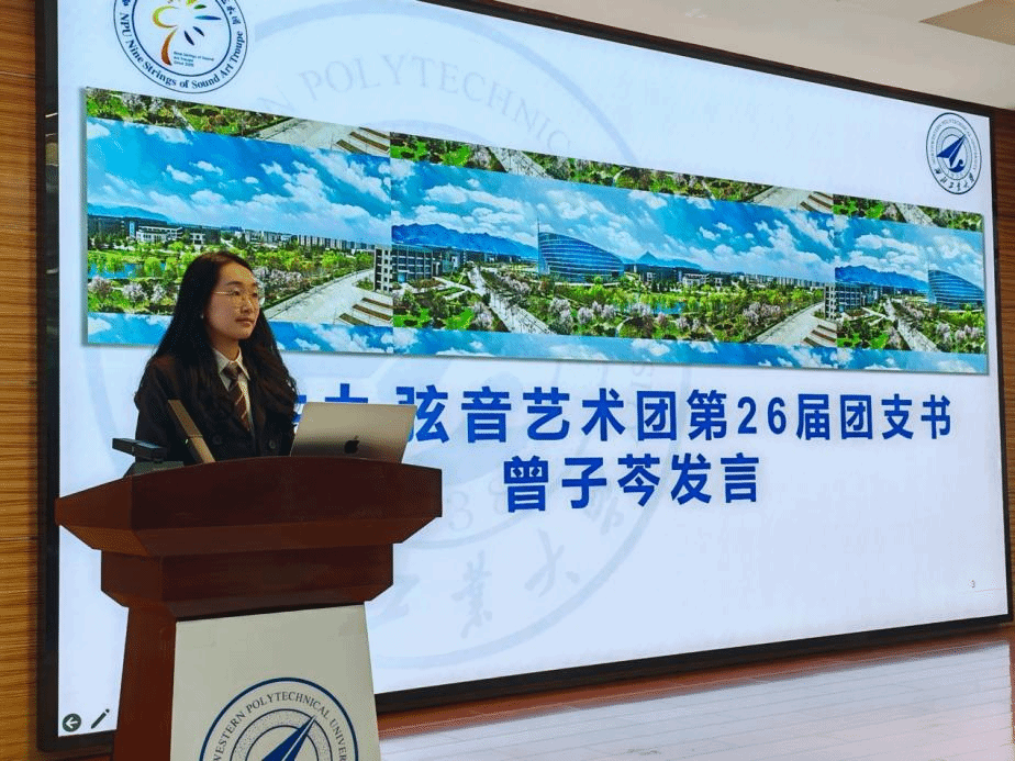 团支书曾子芩同学围绕思想引领与组织建设发言。她表示将强化团组织在艺术团发展中的核心作用,通过主题团日、理论学习等多种形式,增强团员凝聚力与责任感,打造有温度、有深度的艺术集体。