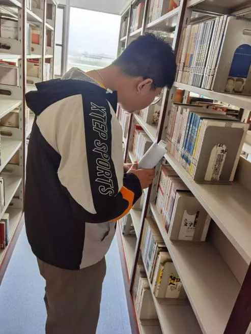 DL062019班李欣、章天成同学在图书馆管理老师的引导下,帮忙清理了西北工业大学长安校区图书馆书架上的杂物,并将错位的书摆放整齐。