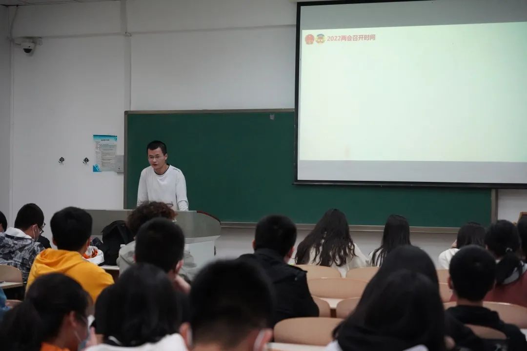 曹正阳在会议上对两会中“稳增长如何适当靠前发力”、“经济社会发展目标如何定”、“‘三农’工作重心如何实现转移”、“疫情防控下一步怎么干”、“‘民生清单’如何回应百姓诉求”六大看点进行了深度剖析,并于同学们展开探讨,同学们各自阐述自己的观点,在学习与讨论中共同进步。