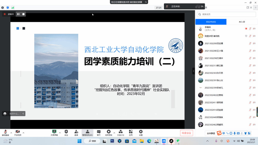 团学成员开展培训活动,院宣讲团成员崔启航主持会议。