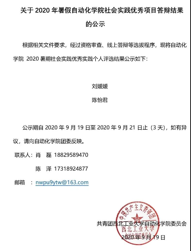关于2020年暑假博彩网站导航 社会实践优秀项目答辩结果的公示