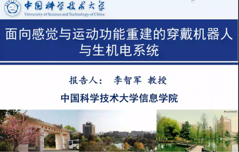 11月1日上午的学术报告环节,中国科学技术大学李智军教授作了题为“面向感觉与运动功能重建的穿戴机器人与生机电系统”开场报告,对可穿戴机器人的现有的科学问题进行了深入分析与研究,并演示了可穿戴机器人在肢体损伤患者康复训练和机器人辅助运动等方面的应用。